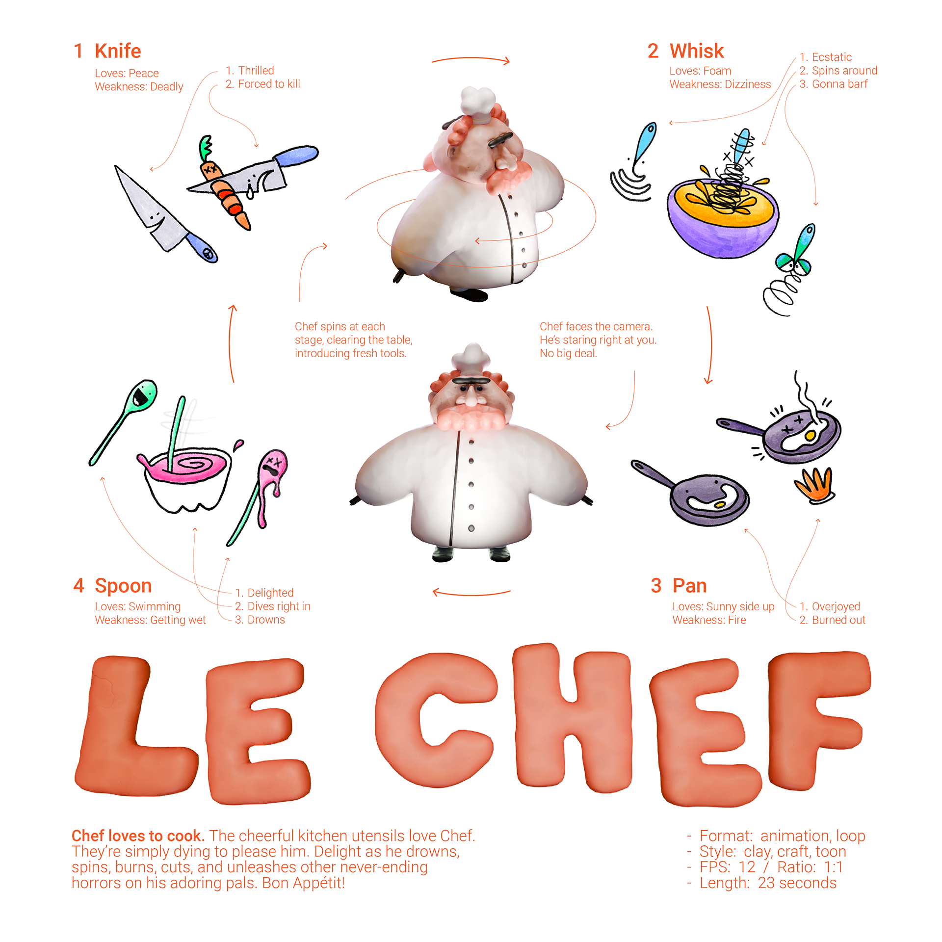 Chef craves the perfect dish. His adoring kitchen utensils are dying to help 🍳💀💔